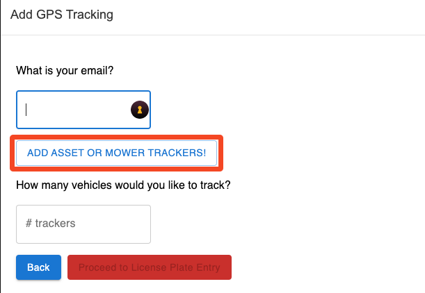 5. To add an asset tracker, wire tracker for a vehicle, etc., click on Click here to add asset or mower trackers!