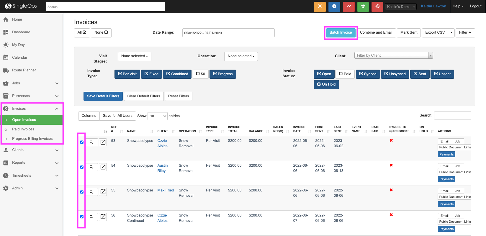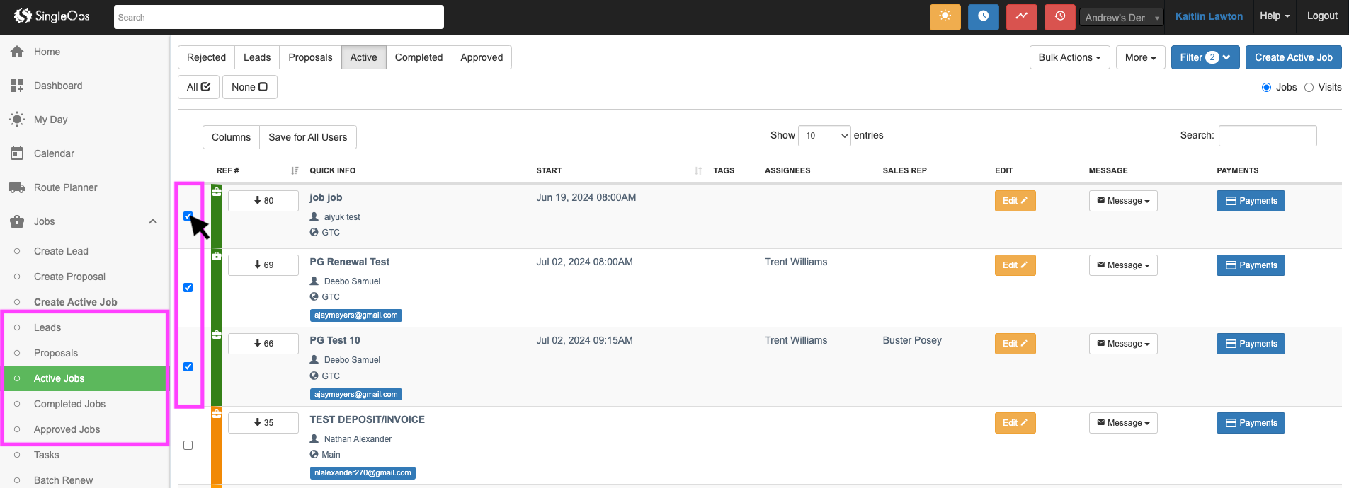 *Tip: Both the Jobs page and the Open Invoices page can be filtered. - Click the Bulk Actions button at the top of the page.