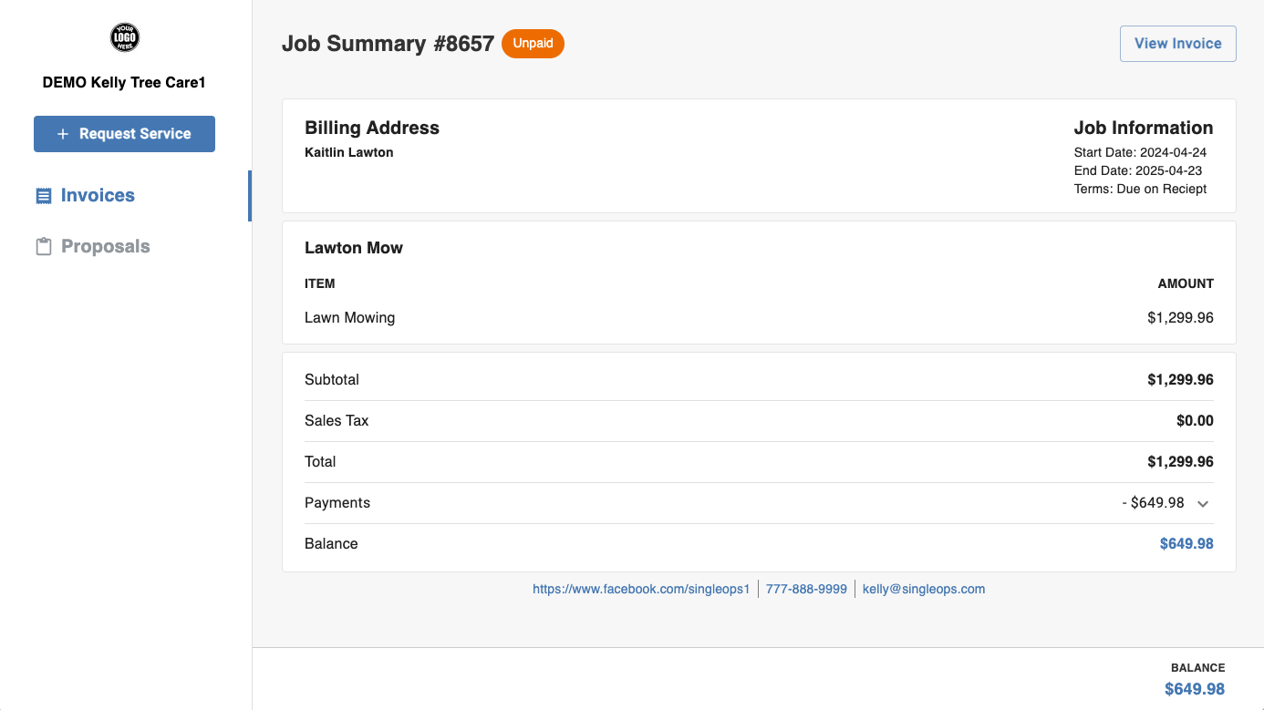 Invoices can be sent from several places within the app including any of the Job pages, Open Invoices page, the My Day page, or the Client's profile page.