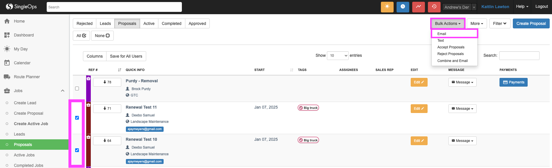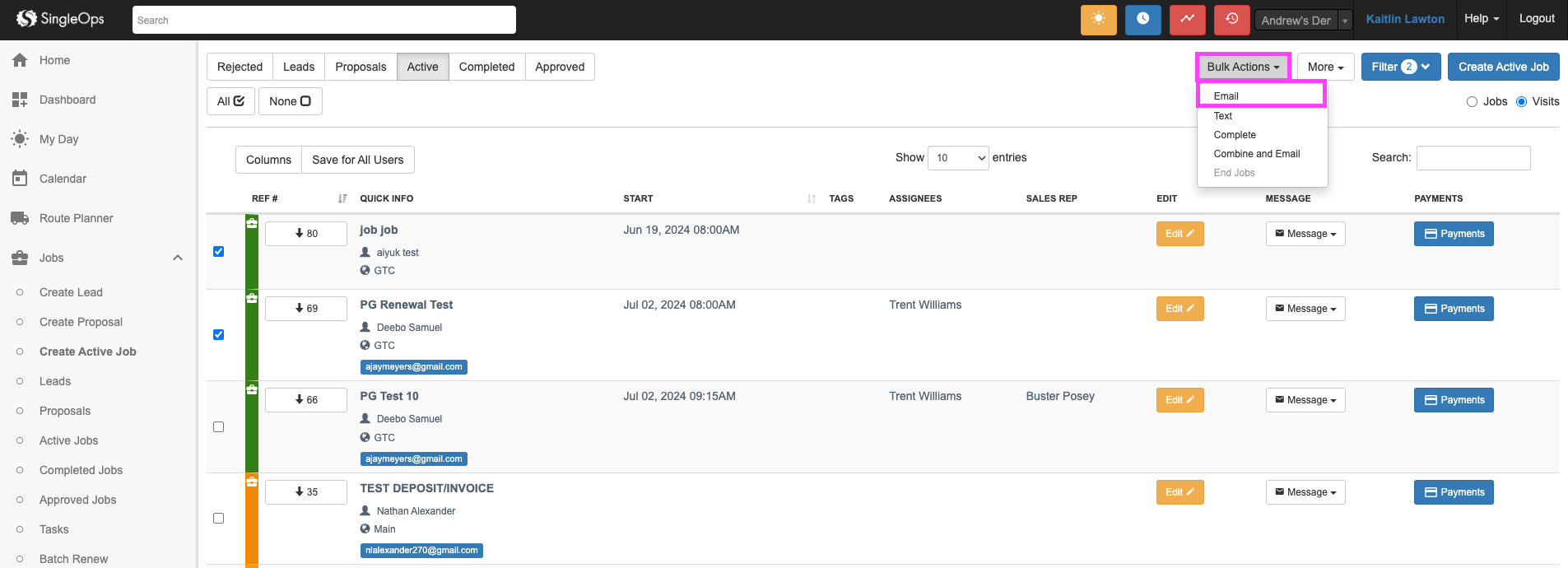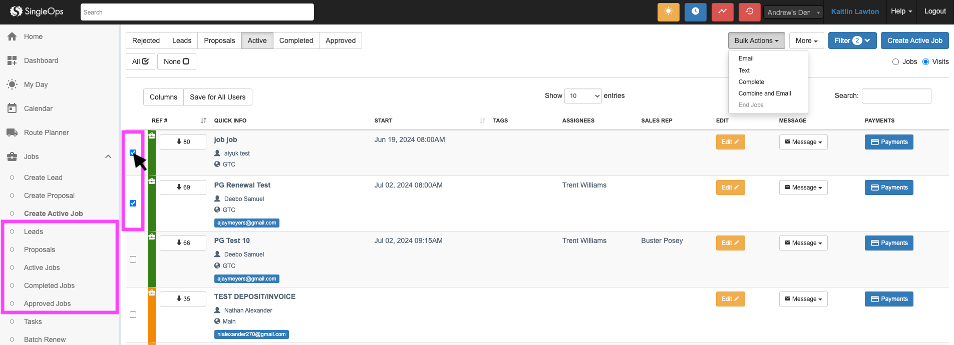 - Select the box next to the jobs you wish to send a batch of emails to.