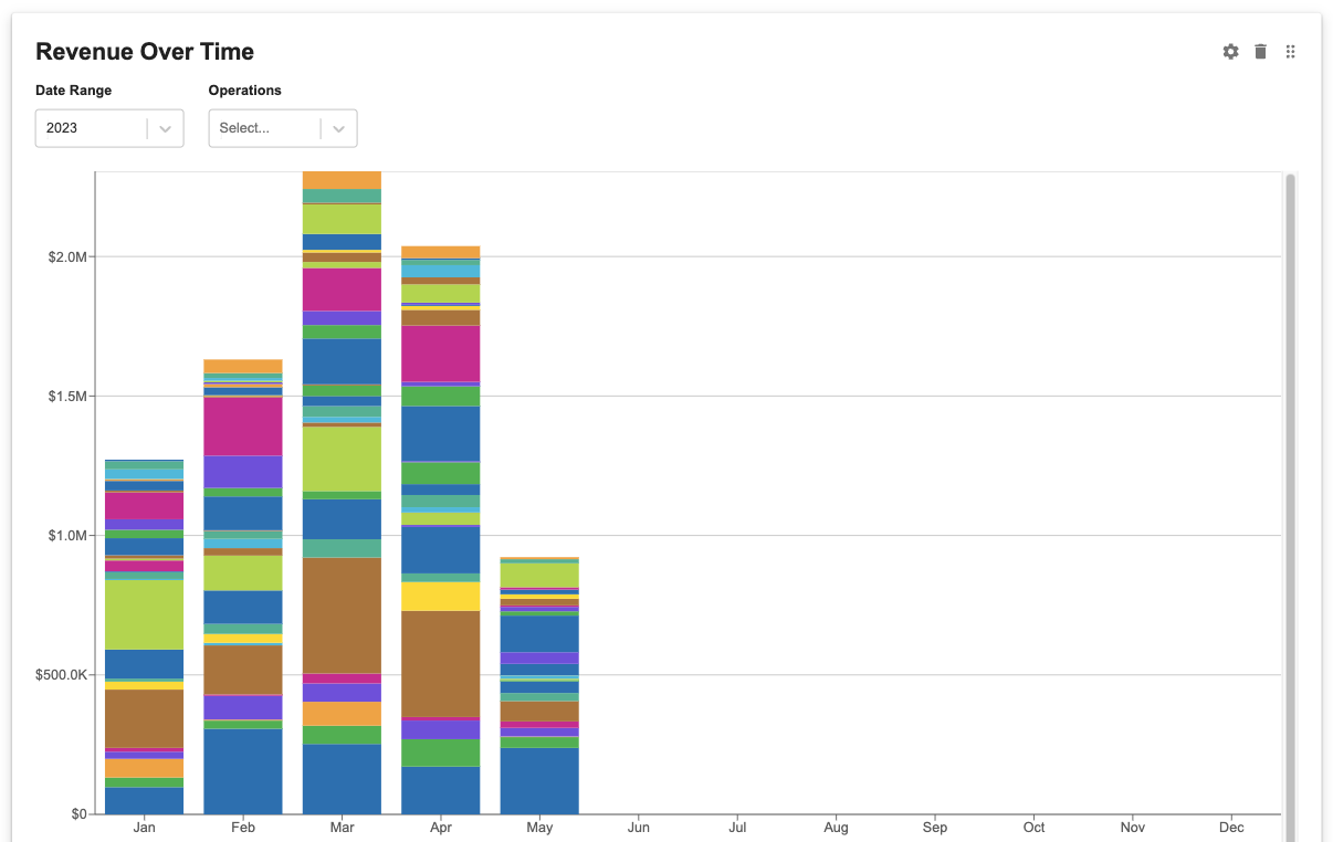 | Operation | Pulls revenue from jobs with selected operation. Select one or more operations. |