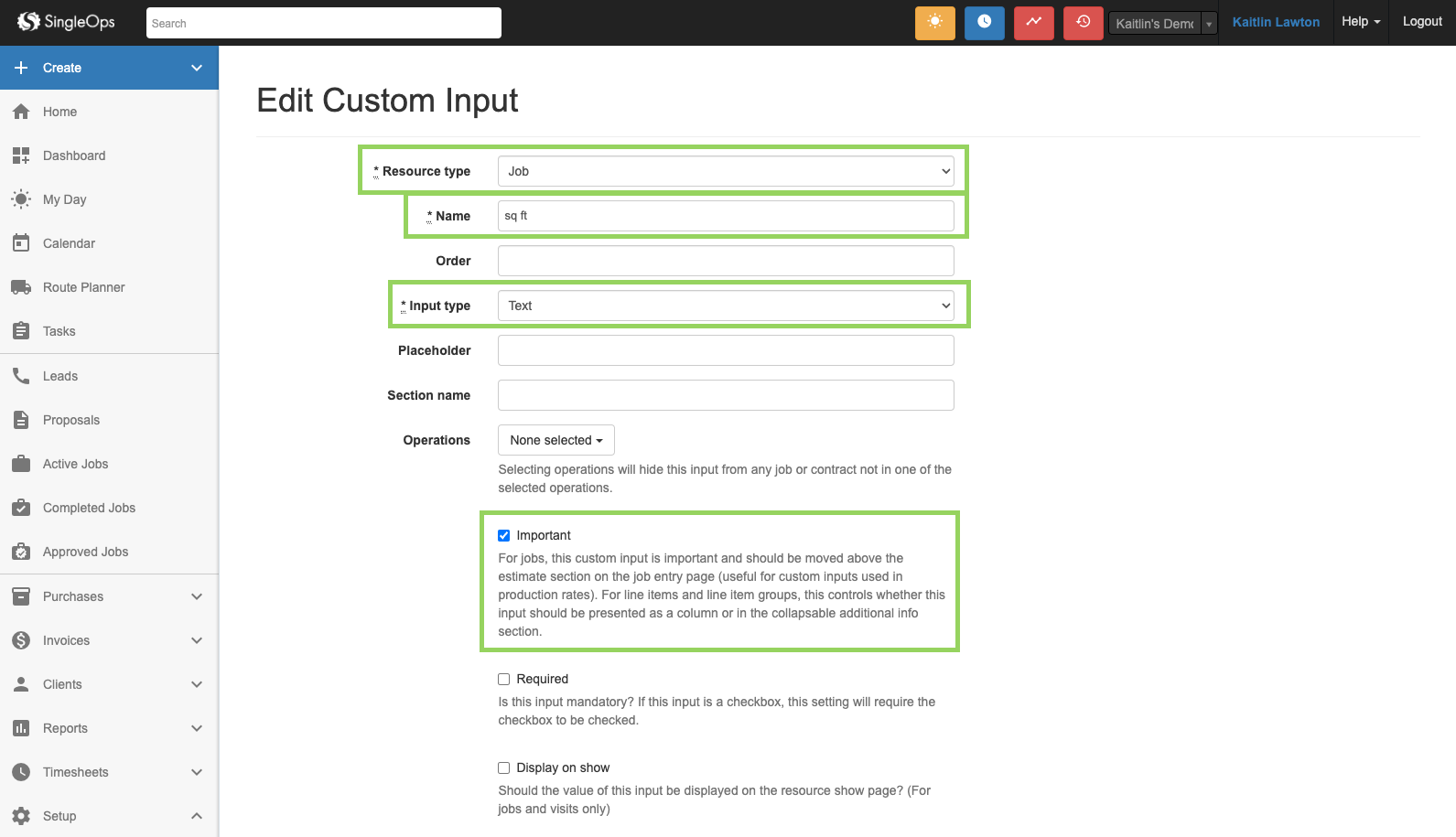 Resource type Job Name Measurement type (e.g.: sq ft) Input type Text Important Checked