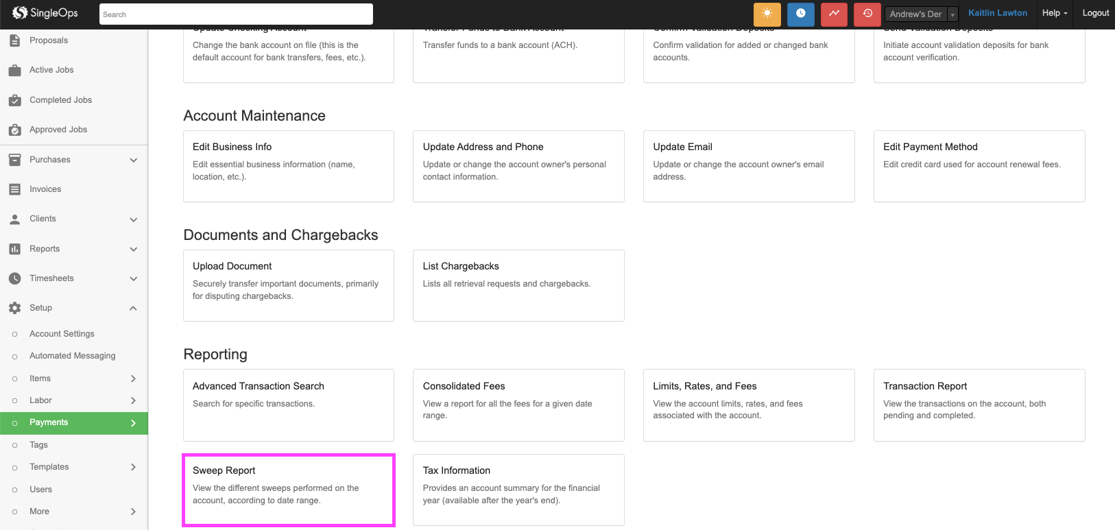 - Scroll down to the Reports section and find Sweep Report and click to open.