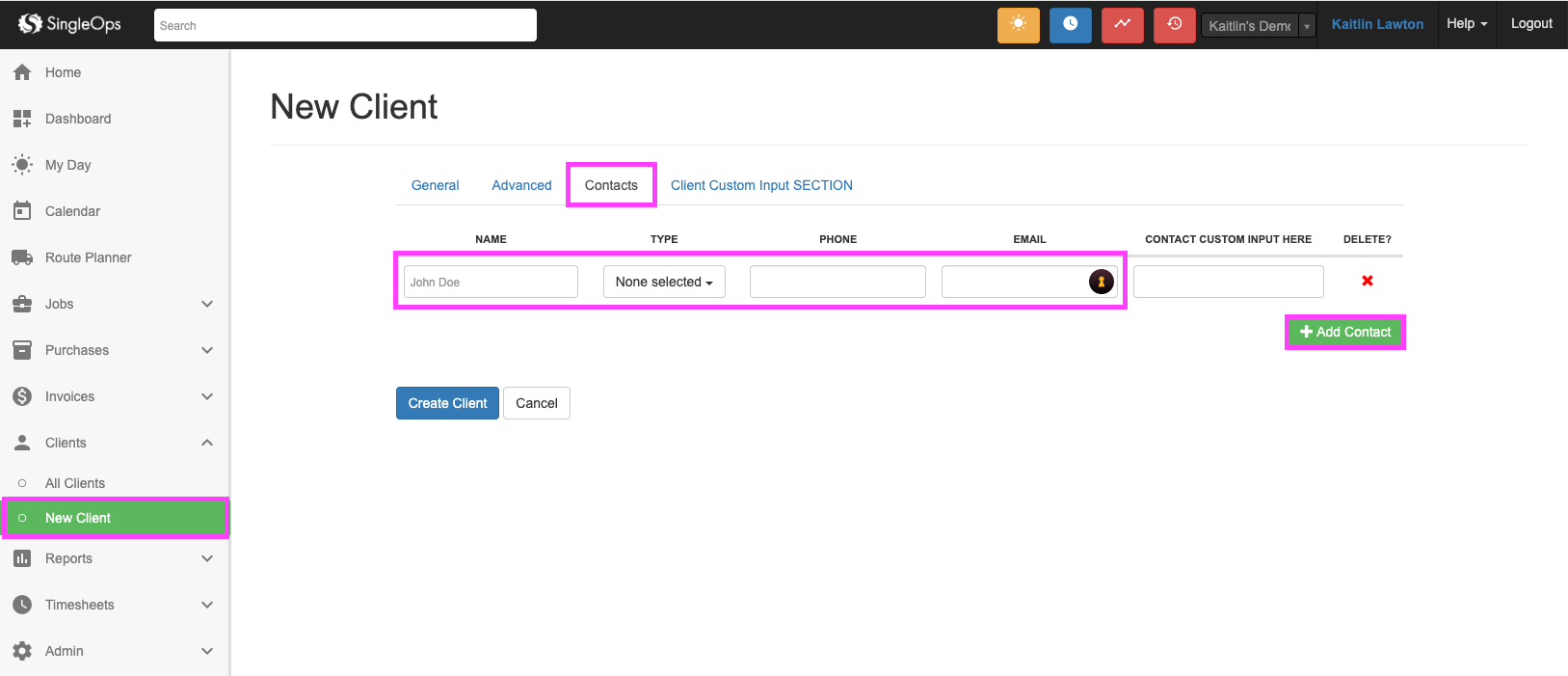 - Under Additional Options, add a primary contact to the Job. Doing so will also add that contact to the Client's profile.
