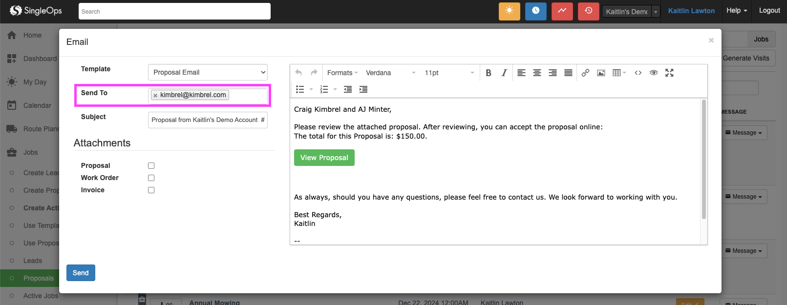 - Now, when you send a proposal or invoice email, the Client and any selected Contacts are included.