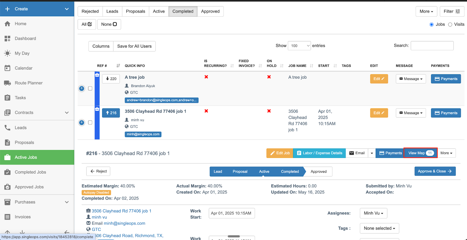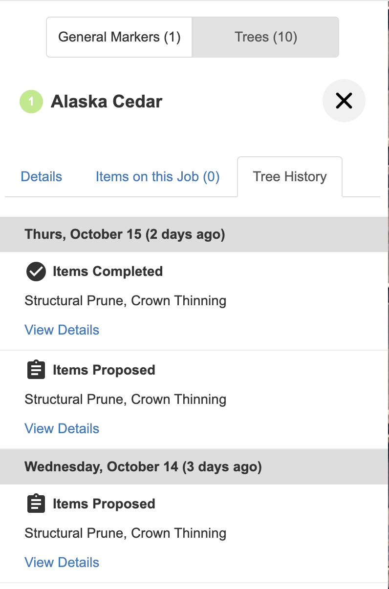 - Job Show Map: Crews can now view Tree Inventory directly on the Job Show page, with markers and lists for improved visibility in the field. This is a view only view, to prevent unwanted updates / changes to the client map while the job is in progress.