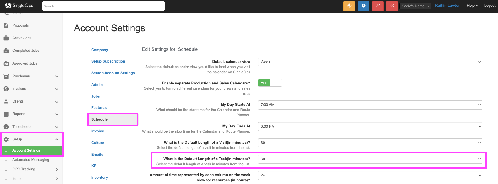 After the task is created, the length of the Task on the Route Planner will reflect the Default Route Length, as dictated in Setup > Account Settings > Schedule > What is the Default lengths of a Task (in minutes)? - Select minutes from the dropdown.