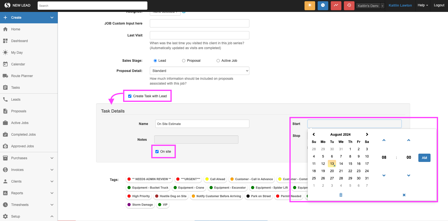*Note: This Task will not associate with a Job if you leave the Job drop-down blank.