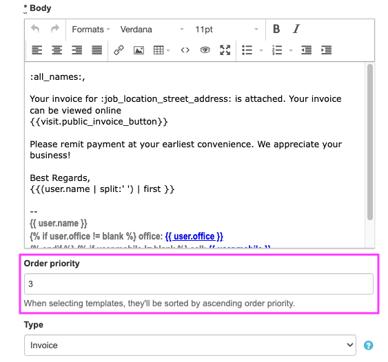 • Order Priority - This determines what order this template will be sorted in when selecting an email template.