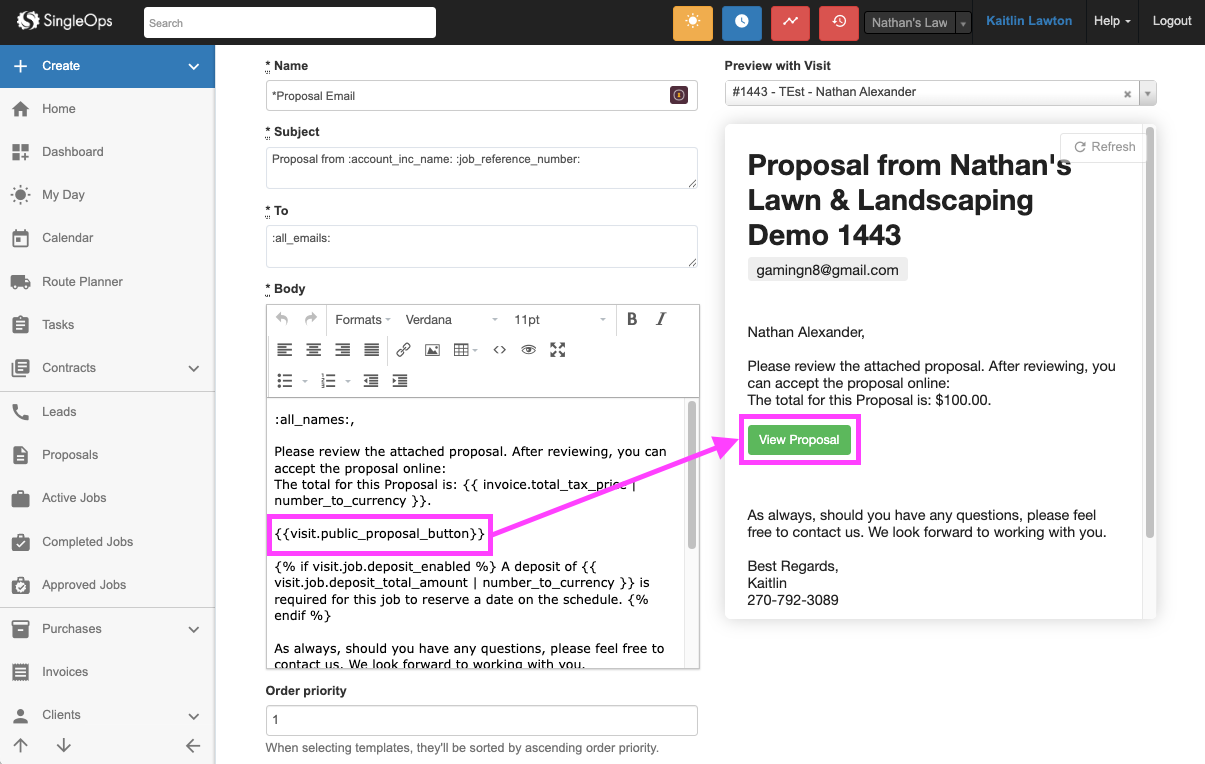 • This also triggers the "Sent" Proposal Status. The Email templates must be "Proposal" type for Status to show as "Sent".