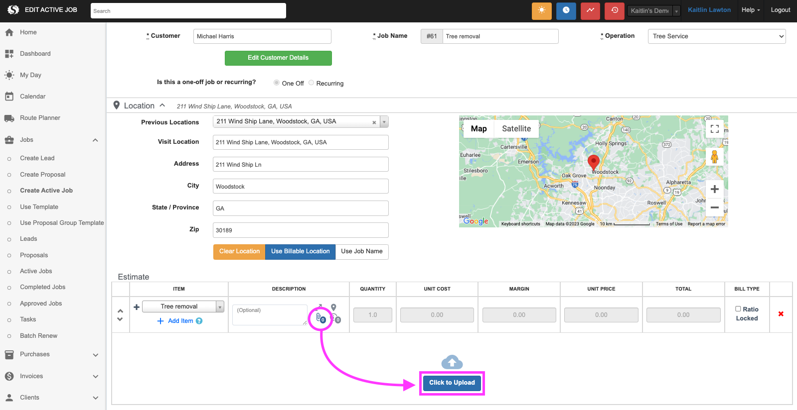 - Click Edit on an any existing Job and click the 'paper clip' icon, then Click to Upload attachments