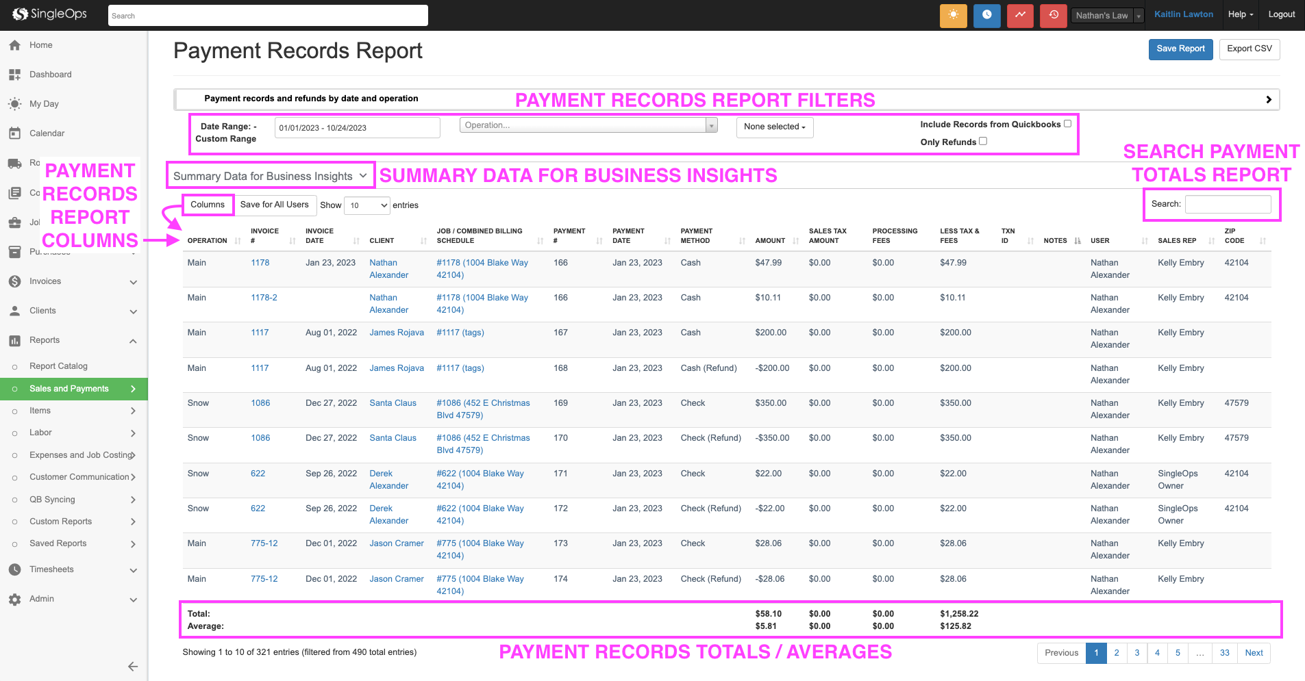 Search this report based on Client's name, Payment Method, Job name, Payment Record notes, Operation, User's name or the Reference Number for the Job, Visit, Invoice or Payment.
