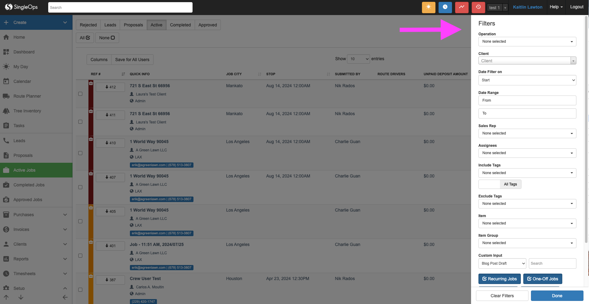 6. On almost all pages in SingleOps, you have the drop down option for Filters. When viewing the Job Management Page, you can use these Filters and apply them to your page as well.